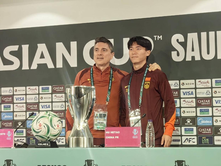 北京时代23日下昼,中国U23队主栽种安东尼奥携队员胡荷韬、日本U23主栽种大岩刚带上一个不有名球员梅木怜(生瓜蛋子)干预了赛前新闻发布会。