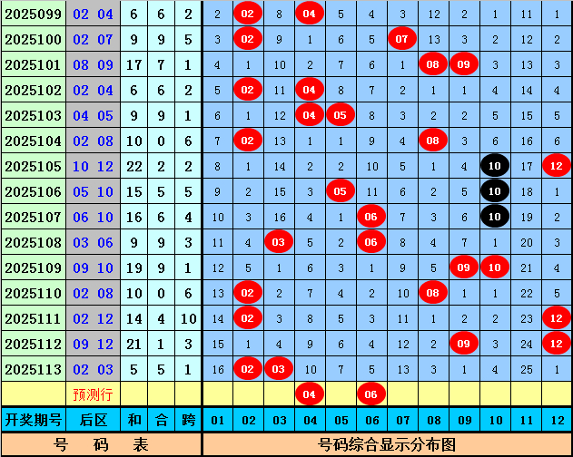 后区第二位分析分析:在第114期历史同时开奖中,该位号码升重降次数比为7:3:6,出现鸿沟在06-12区间,最近5年后区第二位分析号码升重降次数比为2:1:2,出现鸿沟在07-11,对比最近几年同时号码,本年第114期看好后区第二位分析号码迟缓下落,怜惜号码06。