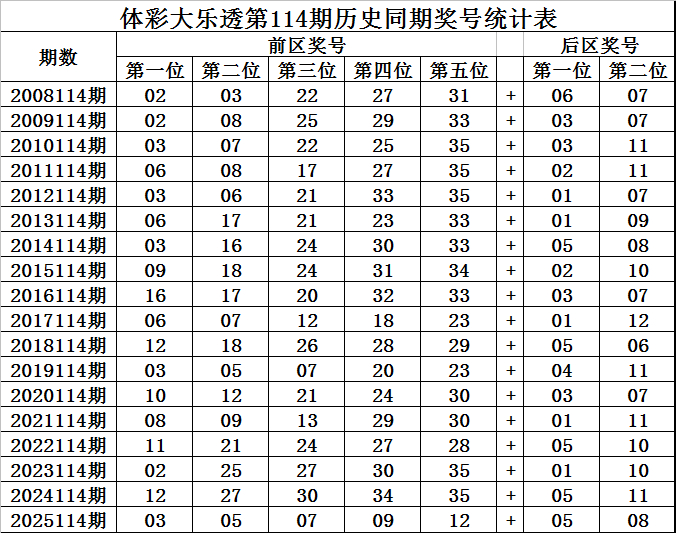 王守礼体彩大乐透第2025114期历史同时定位升重降号码分析: