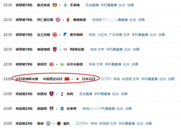 跟着U23亚洲杯季军战越南队点球大战治服韩国队体育赛事直播,赢得季军,本次U23亚洲杯也来到了临了1场决赛,中国队初次晋级决赛,对阵卫冕冠军日本队演出“中日对决”,是本周末万众瞩筹算裂缝赛事,此外,五大联赛也将不息打响,多支权门出场,格外值得期待。北京技术1月24日晚间20点30分,英超西汉姆对阵桑德兰,然后德甲拜仁对阵奥格斯堡,英超曼城对阵狼队,临了亚洲杯决赛中国队对阵日本队,CCTV5将准时直播!