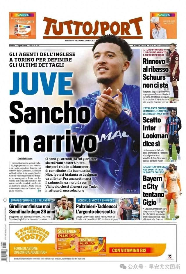 《齐灵体育报》报谈,曼联边锋贾登-桑乔的牙东谈主还是抵达了齐灵城,连续与尤文图斯谈判转会的联系事宜。