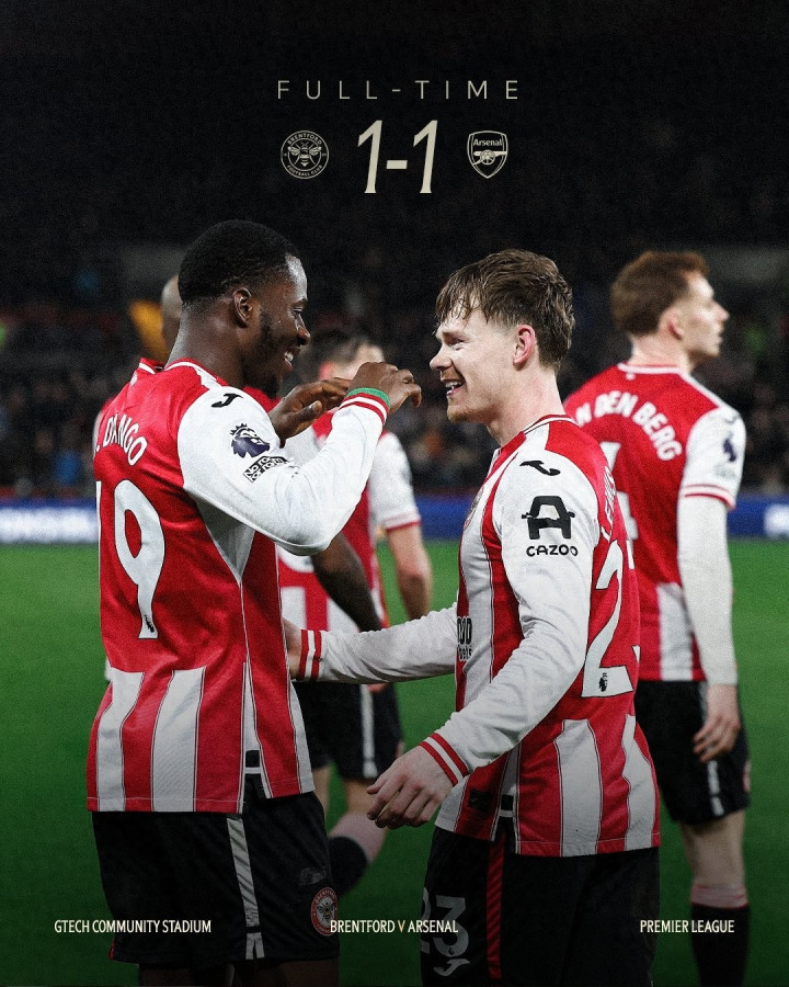 英超第26轮,布伦特福德在格局占优的情况下1-1战平阿森纳,这让阿森纳在英超积分榜上的上风稳固至4分,英超争冠悬念再起。